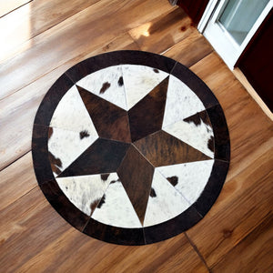 Handmade Genuine Leather Round Cowhide Rug with Star Design