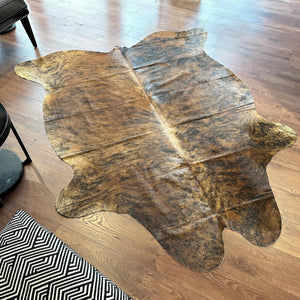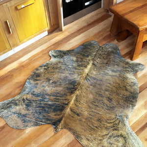 Genuine Brown Brindle Cowhide Rug, Real Cowhide Carpet, Handmade Rustic Size 5.4 x 7.1 ft -165 x 217 cm