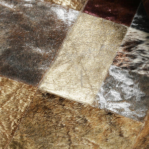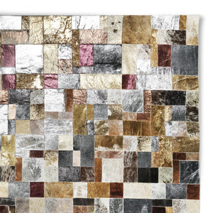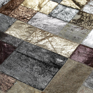 Multicolor Metallic Cowhide Patchwork Rug, Handmade Genuine Leather Area Carpet, Luxury Natural Cowhide Rug for Living Room