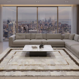 Cream and Gold Tuscan Rug, Geometric Border Area Rug,