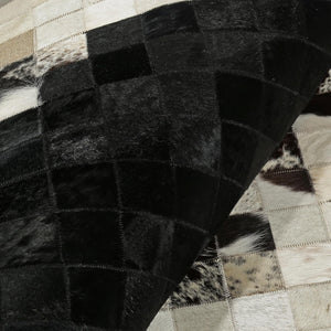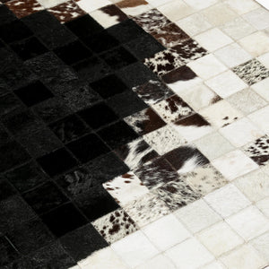 Cream & Black Gradient Design Cowhide Patchwork Rug