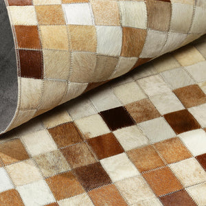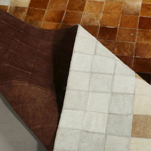 Enhance your home with the timeless elegance of the Cream & Brown Patchwork Calfskin Carpet. Handcrafted from genuine cowhide, this luxurious rug features a sophisticated plaid patchwork design in warm cream and brown tones. Its natural texture and high-quality craftsmanship make it a versatile piece that blends seamlessly with modern, rustic, or classic interiors.