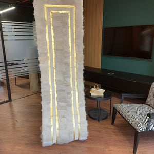 Add a touch of luxury to your home with our Cream Genuine Sheepskin Rug, a handmade masterpiece crafted from natural sheepskin. This modern Toscana rug features a soft, plush texture that brings warmth and elegance to any living room, bedroom, or office. Accentuated with a durable gold leather border, this rug combines natural beauty with modern sophistication, making it a true statement piece for your home decor.