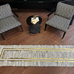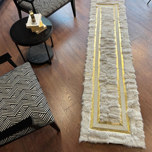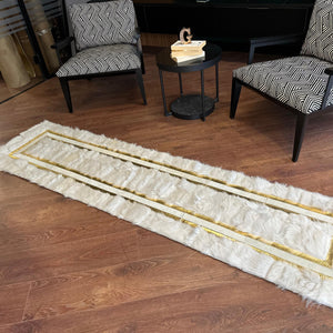 Gray Tuscan Fur Runner Rug with Gold Border, Handmade Long Custom Size Elegant Entryway Runner