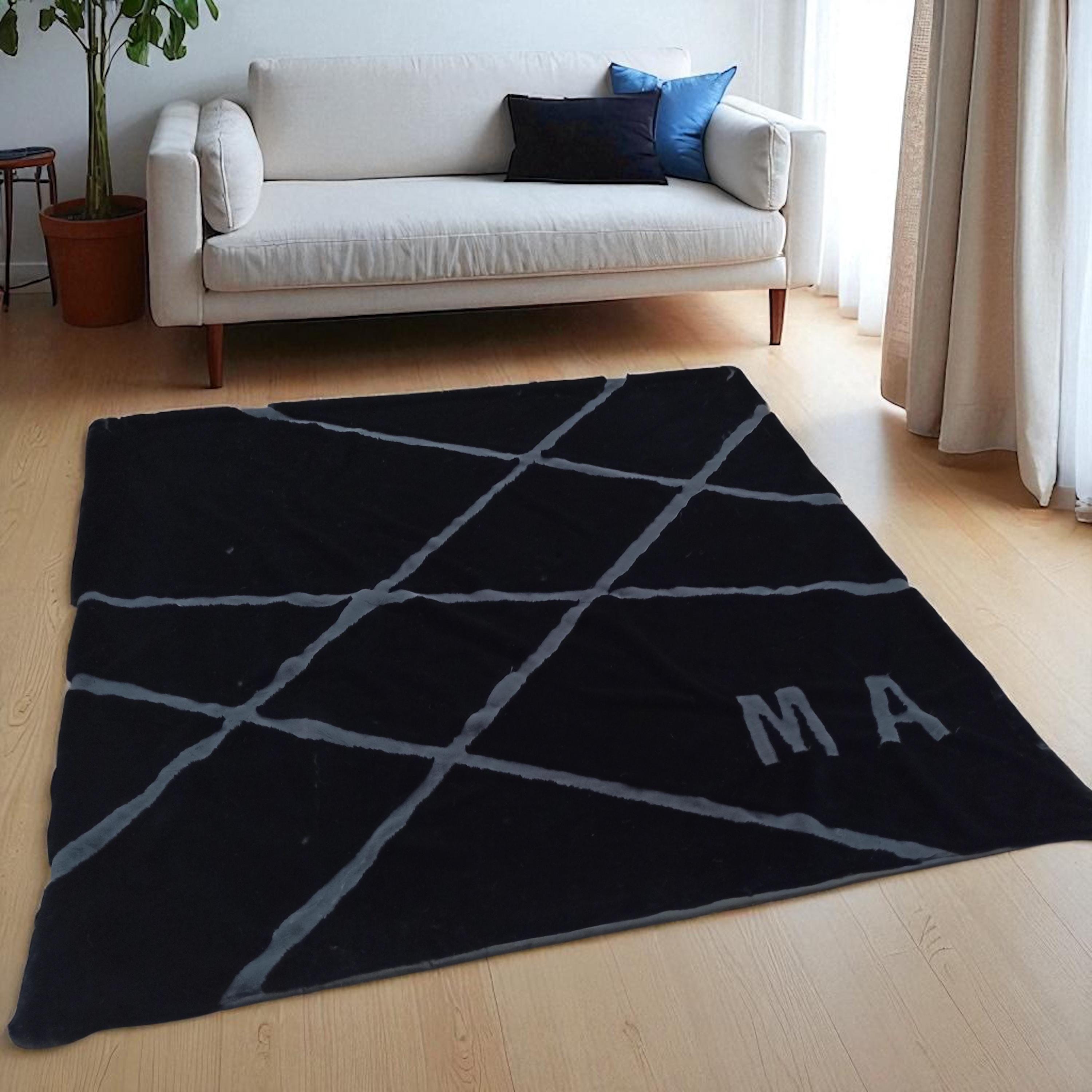 Custom Black Plush Rug with Two Letters, Personalized Soft Fur Carpet, Custom Letter Name Rug for Bedroom