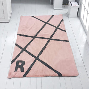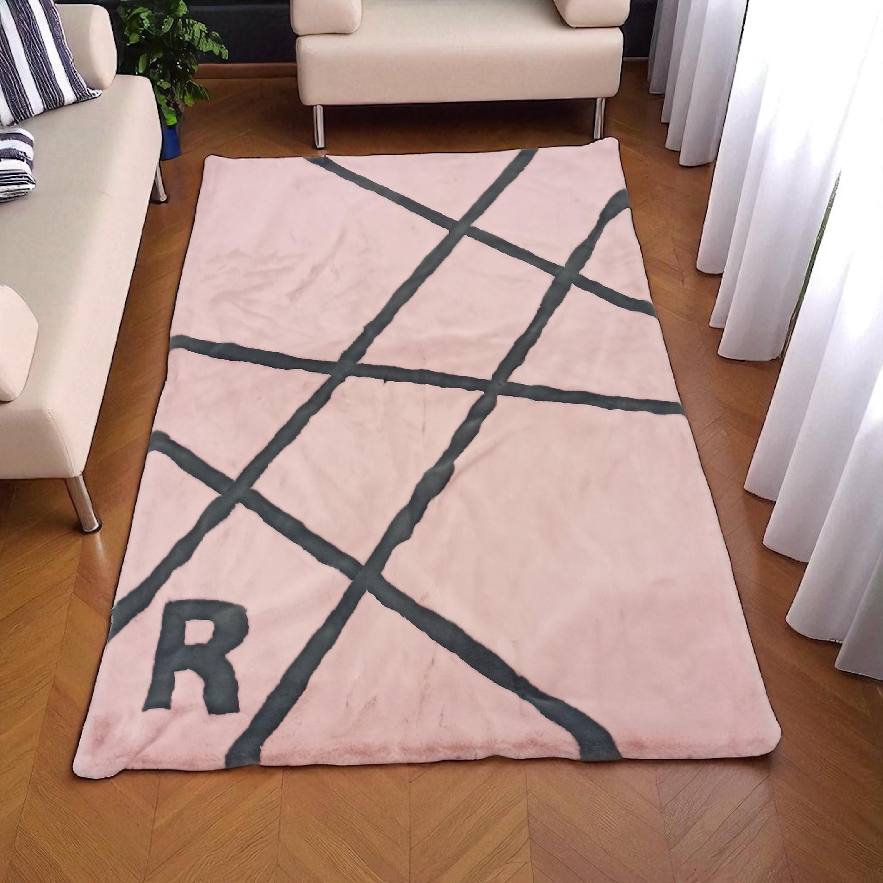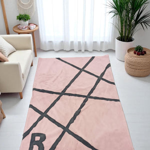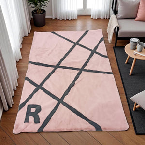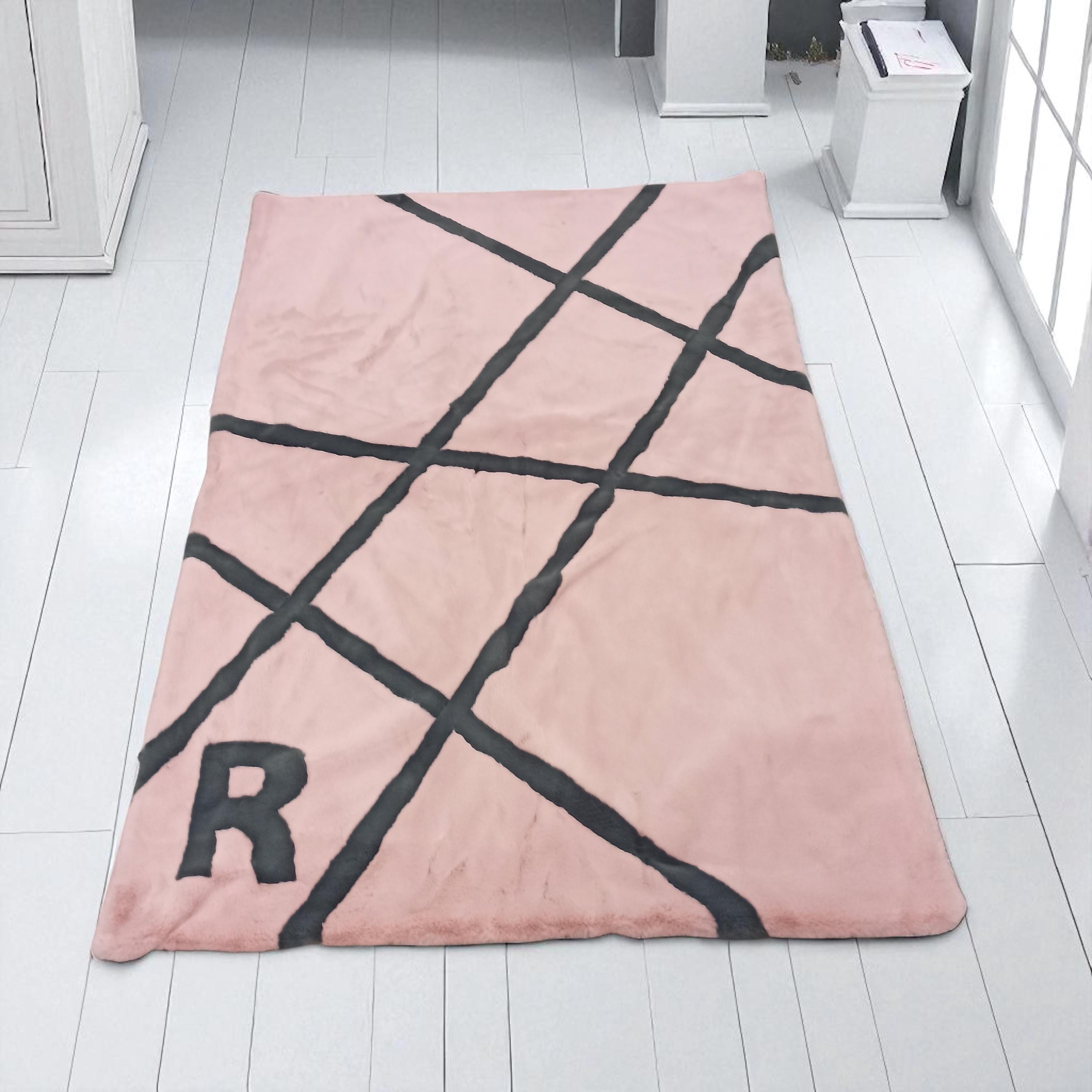This soft pink plush rug with bold black lines and a customizable letter is the perfect way to personalize your space. Whether it’s a child’s name, a family initial, or your own, this cozy rug is made to reflect your style.