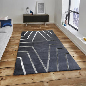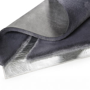 Add a sleek and modern touch to your interior with this Gray Plush Rug. Crafted from premium plush fabric, this rug features a minimalist cream surface intersected by shimmering silver lines that create a geometric and elegant look. Its soft texture and contemporary design make it a perfect centerpiece for living rooms, bedrooms, or offices.