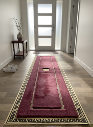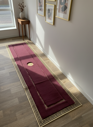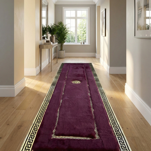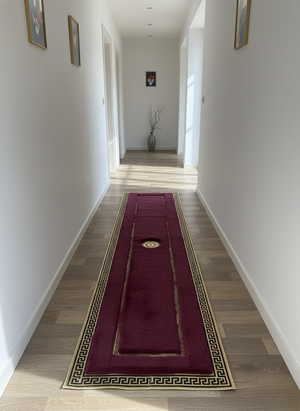 Burgundy Plush Runner Rug – Gold Accent Detailing, Ultra-Soft Texture, Non-Slip Backing, Custom Sizes Available