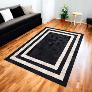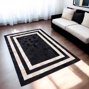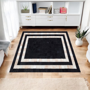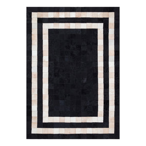 Home Cream Cowhide Patchwork Rug with Black Frame