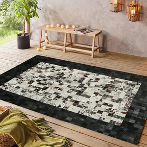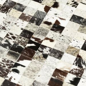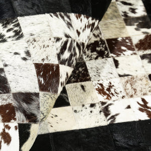 Introduce a touch of rustic charm and modern elegance to your home with this Black and White Cowhide Patchwork Carpet. Designed with natural cow skin pieces in a stunning plaid geometric pattern, this rug showcases a rich blend of brown and multicolor tones, making it the perfect accent piece for boho-inspired interiors or contemporary spaces.