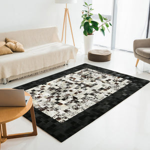 Black and White Cowhide Patchwork Rug, Modern Living Room Carpet