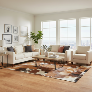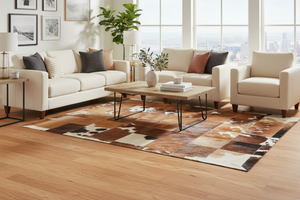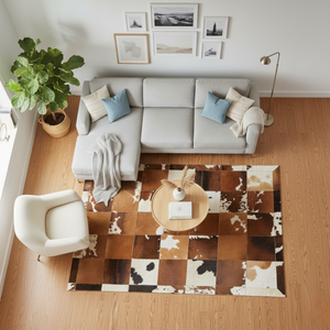 Genuine Cowhide Tricolor Patchwork Rug, Living Room Area Rug