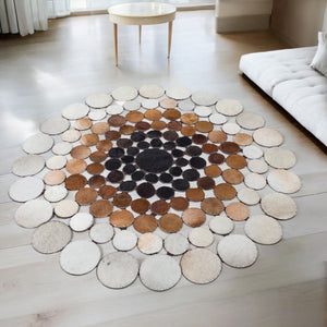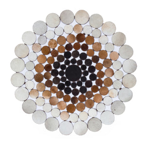 • Design: Circular patchwork with natural cow skin patterns