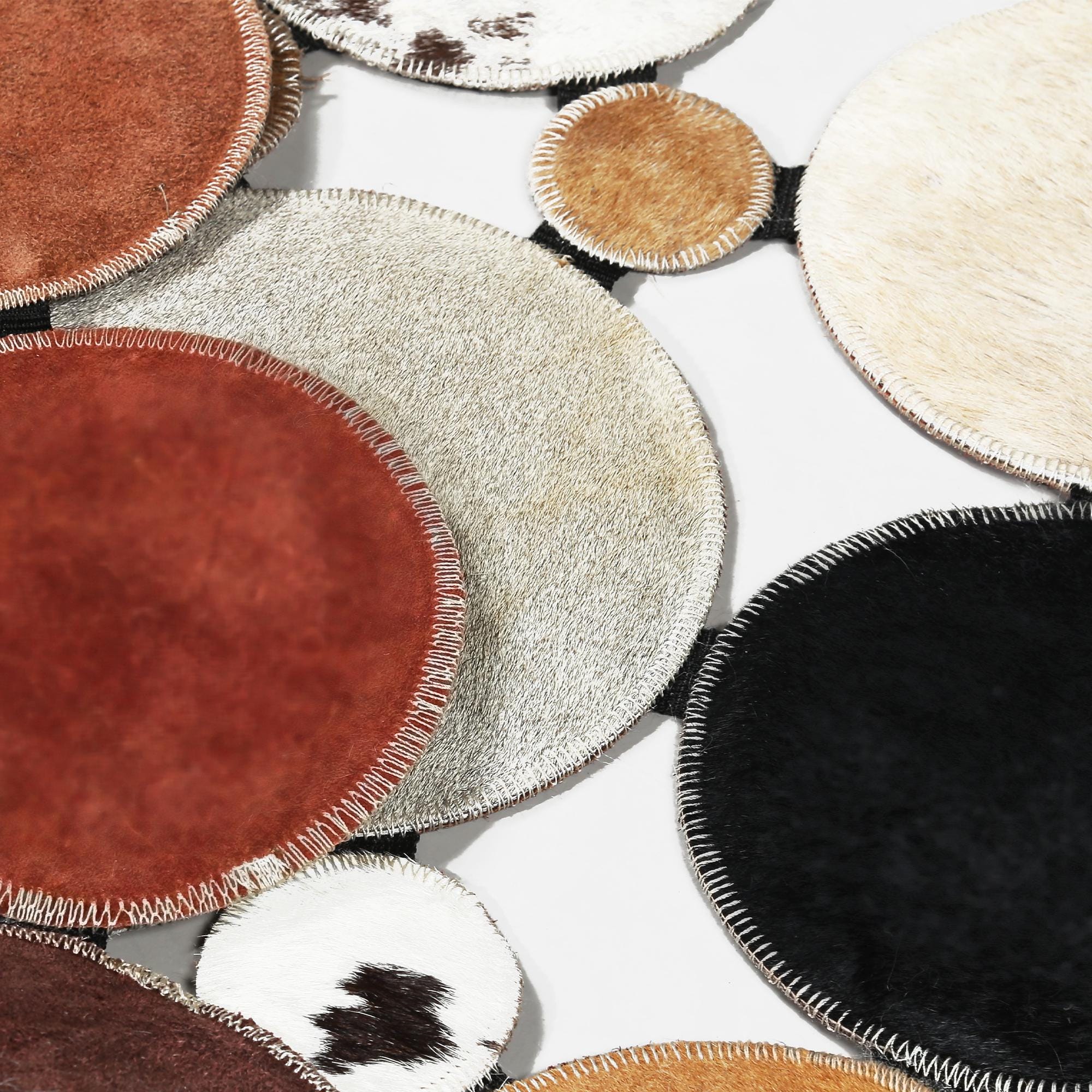 Round Multicolor Polkadot Cowhide Rug, Handmade Patchwork Leather Carpet