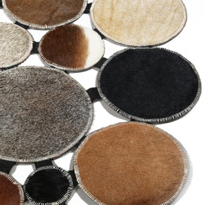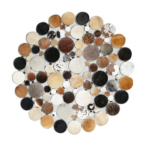 Round Multicolor Polkadot Cowhide Rug, Handmade Patchwork Leather Carpet