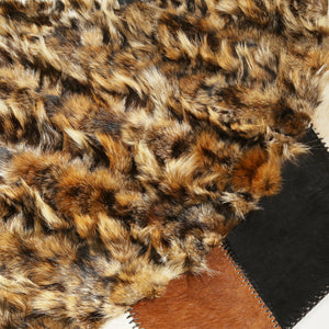 Enhance your home décor with the Genuine Fox Fur Round Rug, featuring a striking black and brown geometric design. This natural fur shaggy rug offers unparalleled softness and luxury, making it the perfect accent for any living space. Hand-stitched with care, the rug combines thick, plush fur with a farmhouse-inspired aesthetic.