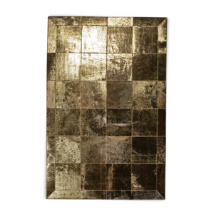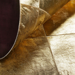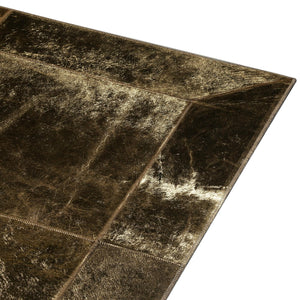 Gold & Bronze Cowhide Patchwork Rug, Luxury Leather Carpet