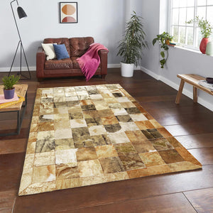 Gold Cowhide Patchwork Rug, Custom Size Living Room Area Rug