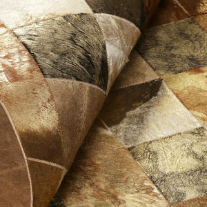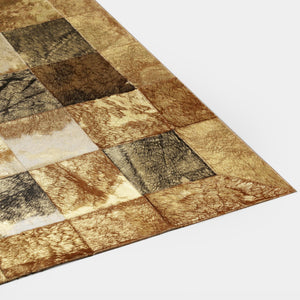 Elevate your interior design with our Gold Leaf Cowhide Patchwork Rug. This luxurious piece is crafted from genuine brown and tan calfskin, featuring intricate gold leaf detailing that adds a sophisticated touch. The patchwork design combines natural textures and warm tones, making it an elegant centerpiece for living rooms, bedrooms, or offices.