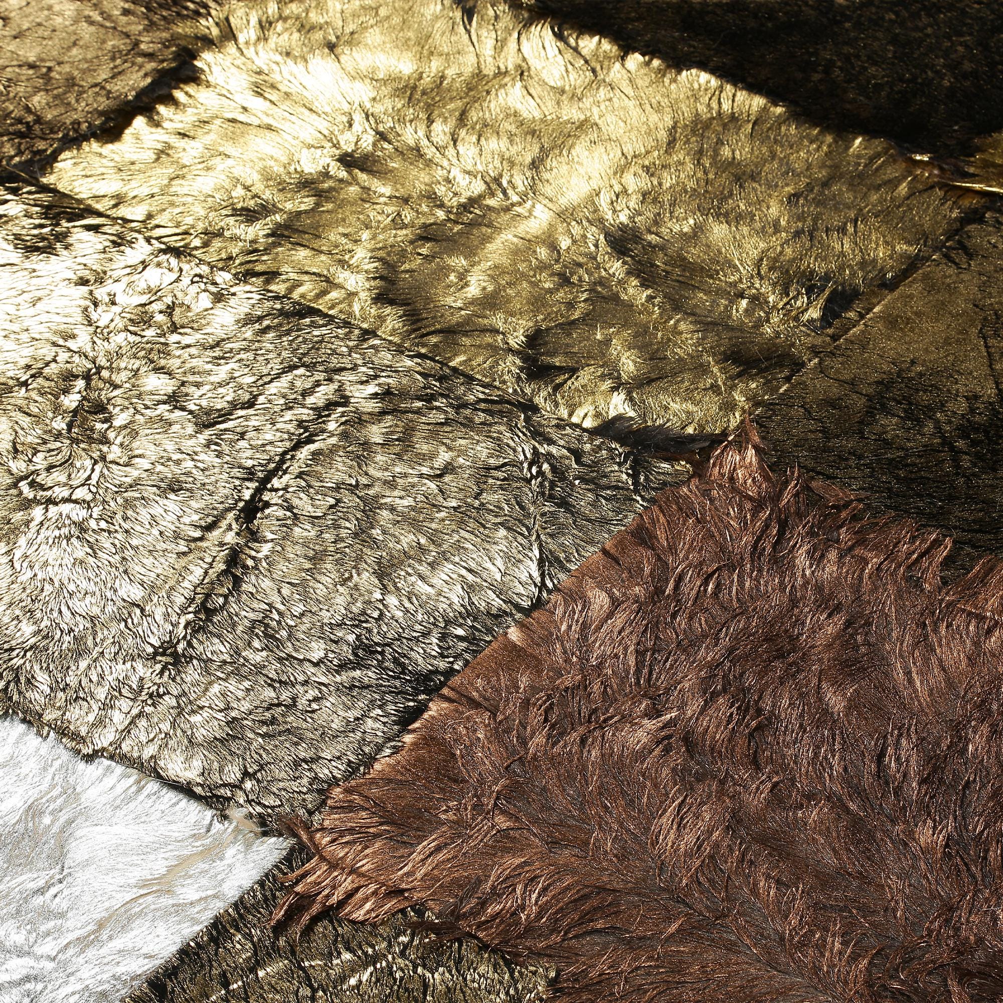 Metallic Patchwork Cowhide Rug, Luxury Gold Silver Bronze Natural Cowhide Rug