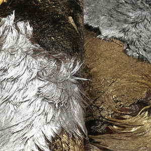 Add elegance and shine to your home with the Gold & Silver Leaf Cowhide Rug. This genuine calfskin patchwork carpet features a luxurious combination of gold and silver accents, creating a stunning bronze-tone design. Perfect for modern or contemporary interiors, this handcrafted cowhide rug adds sophistication to living rooms, bedrooms, or offices. Its natural cowhide texture and premium craftsmanship ensure durability and style. Whether enhancing your home decor or gifting it to a loved one, this shiny luxury carpet is a versatile and timeless statement piece.
