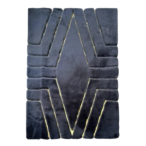 Modern Black Plush Area Rug – Soft Geometric Pattern Carpet