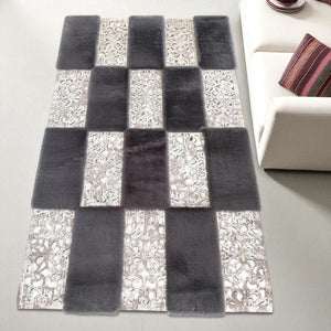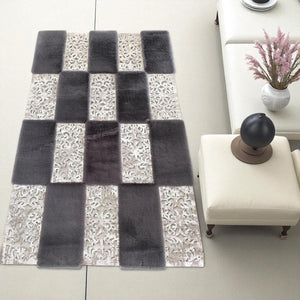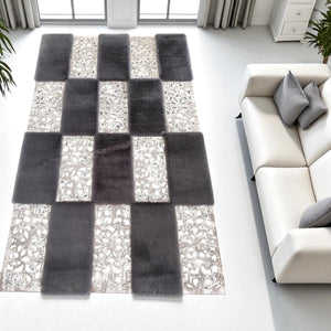 Gray and Silver Patchwork Cowhide Rug – Soft and Elegant Leather Carpet for Modern Living Room