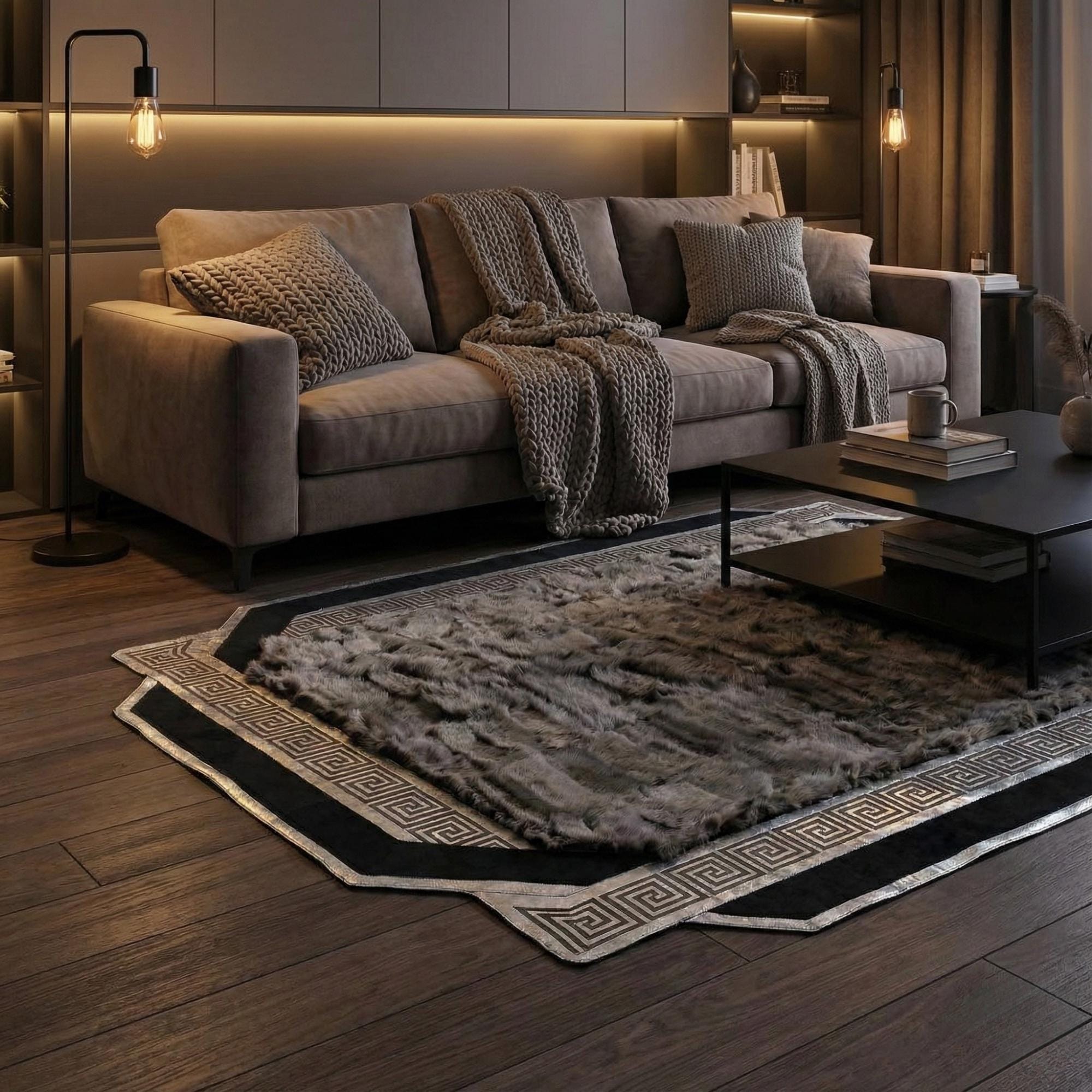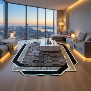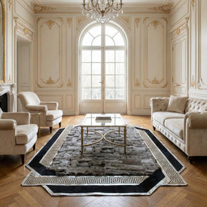 Gray Black and Gold Tuscan Rug, Luxury Geometric Border Area Rug