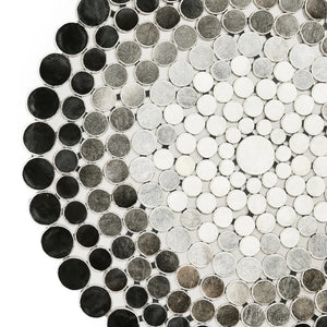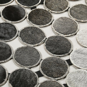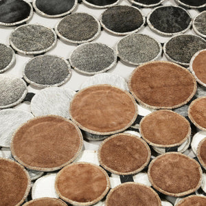 This handmade round cowhide rug features a stunning polkadot patchwork design in shades of black, white, and grey. Made from 100% genuine cowhide, it combines durability with modern style, making it a perfect choice for living rooms, bedrooms, or entryways. Each piece is unique due to the natural variations of cowhide, ensuring a one-of-a-kind statement for your home.
