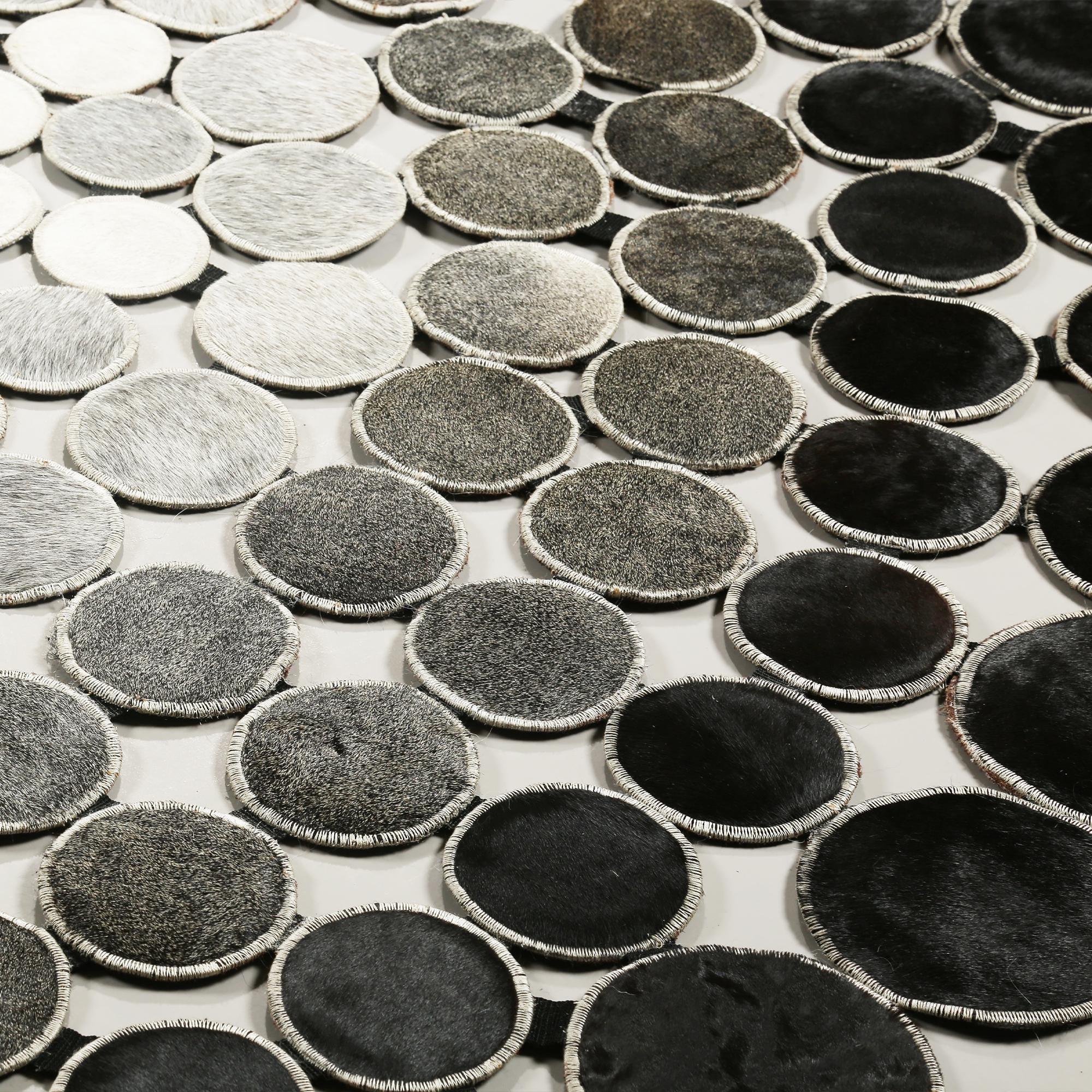Round Polkadot Cowhide Rug, Handmade Black White and Grey Patchwork Carpet