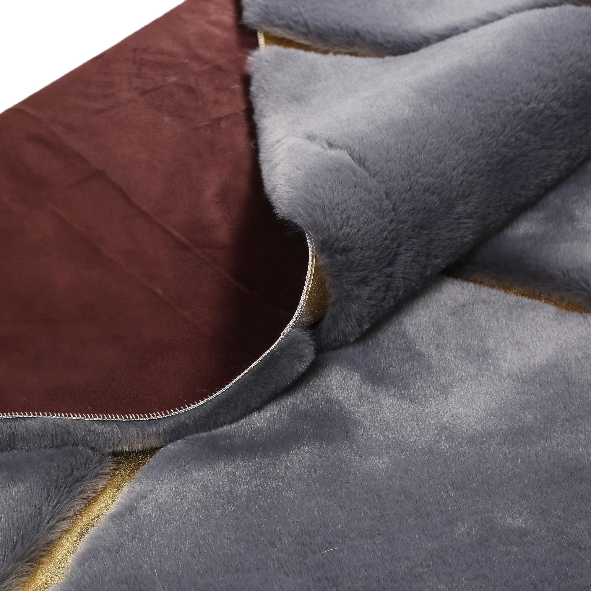 • Design: Geometric pattern with gold accents on a gray fur