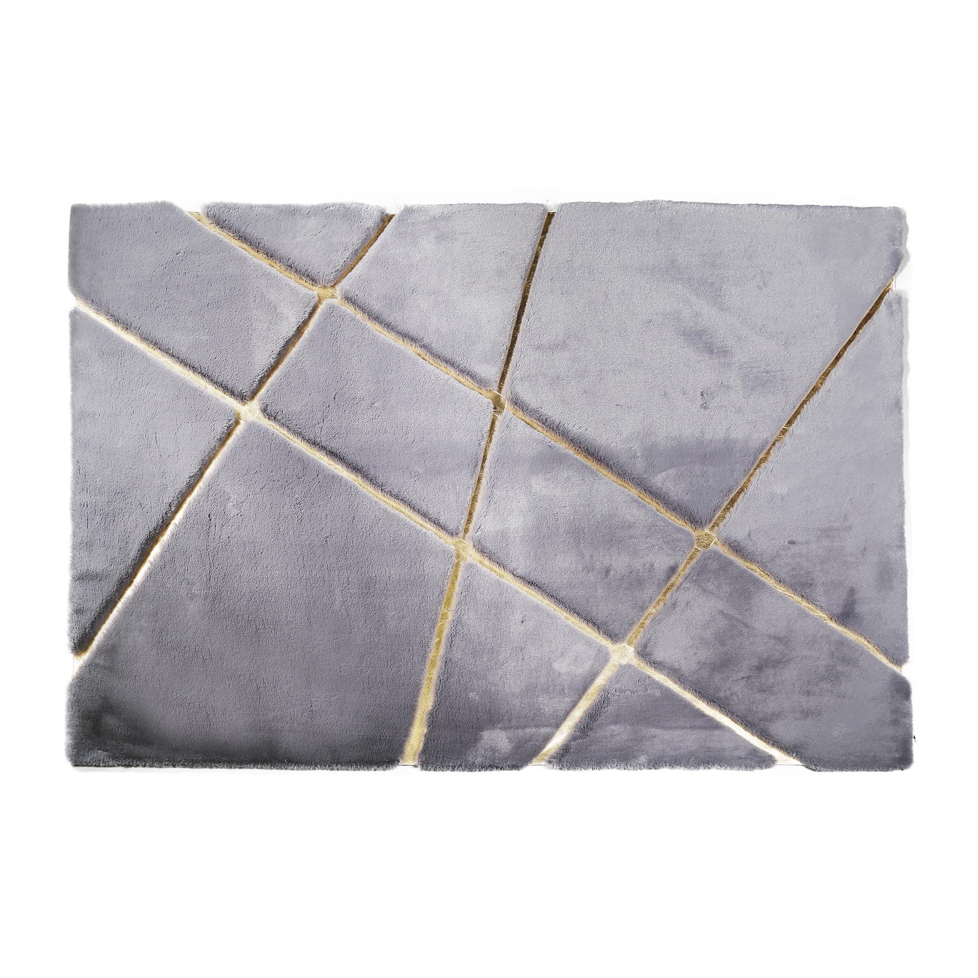Elevate your home décor with the Gray & Gold Fur Plush Rug, a luxurious blend of contemporary design and premium comfort. Featuring a geometric design with gold stripes, this shaggy carpet brings a touch of elegance to any living space. Its soft and fluffy texture is perfect for adding warmth and style to modern interiors.