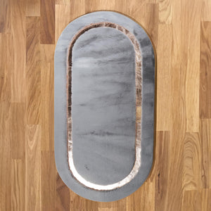 Gray & Rose Gold Frame Plush Rug, Handmade Oval Carpet