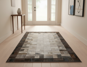 Grey Brown Patchwork Cowhide Rug, Leather Area Rug, Modern Cowhide Carpet for Living Room Décor