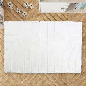 Add a sleek and modern touch to your interior with this White Plush Rug. Crafted from premium plush fabric, this rug features a minimalist cream surface intersected by shimmering silver lines that create a geometric and elegant look. Its soft texture and contemporary design make it a perfect centerpiece for living rooms, bedrooms, or offices.