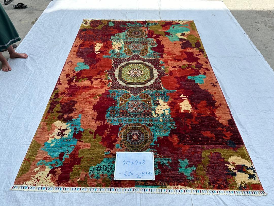 Large Afghan Memluk Rug – Hand-Knotted Wool Carpet 303x208cm (10x6.8ft), 45/45 Quality, Unique Geometric Design