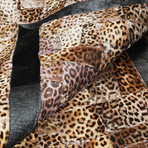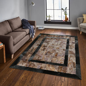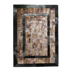 Luxury Cowhide Patchwork Rug – Leopard Print Leather Carpet with Bold Black Border, Custom Size
