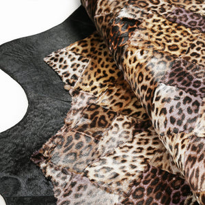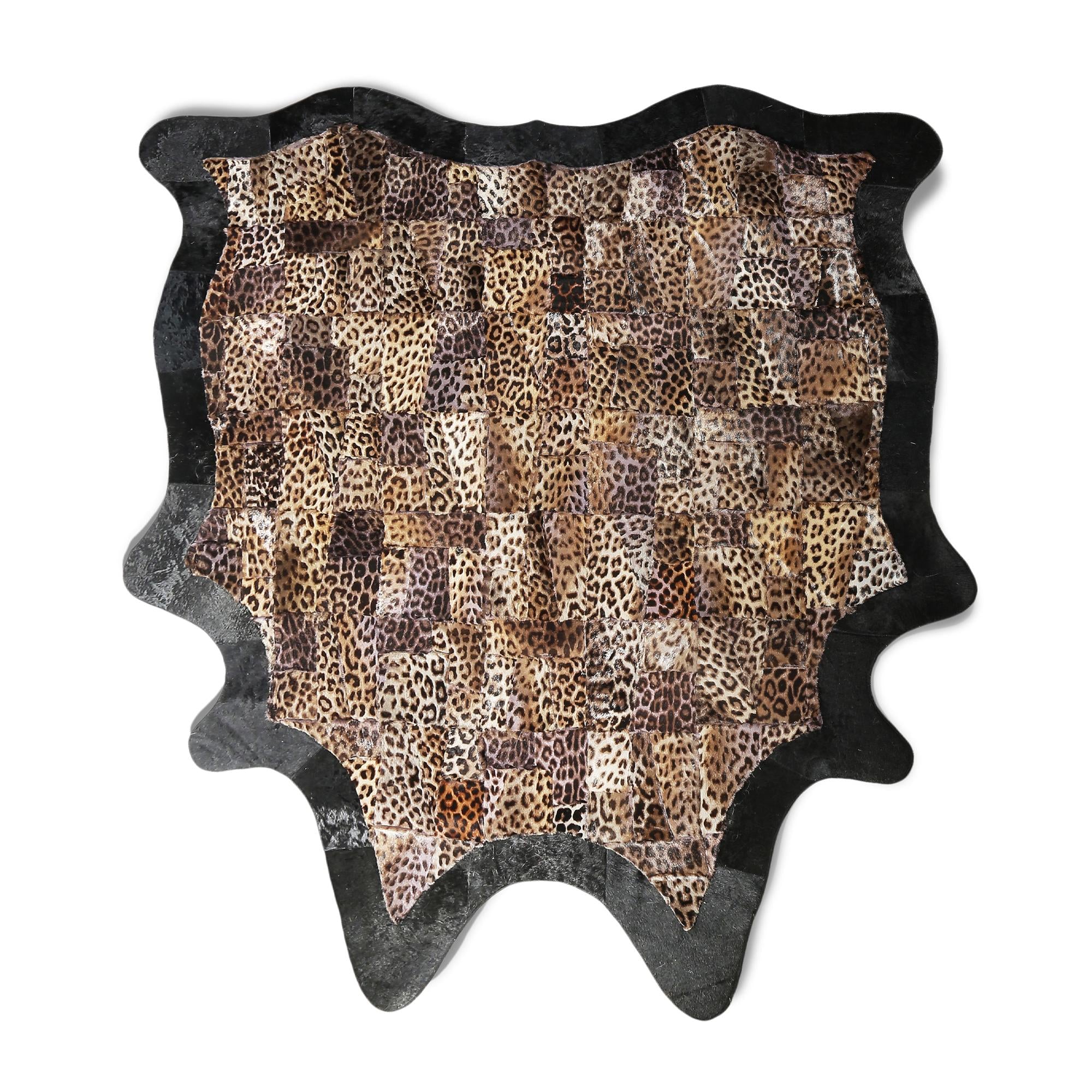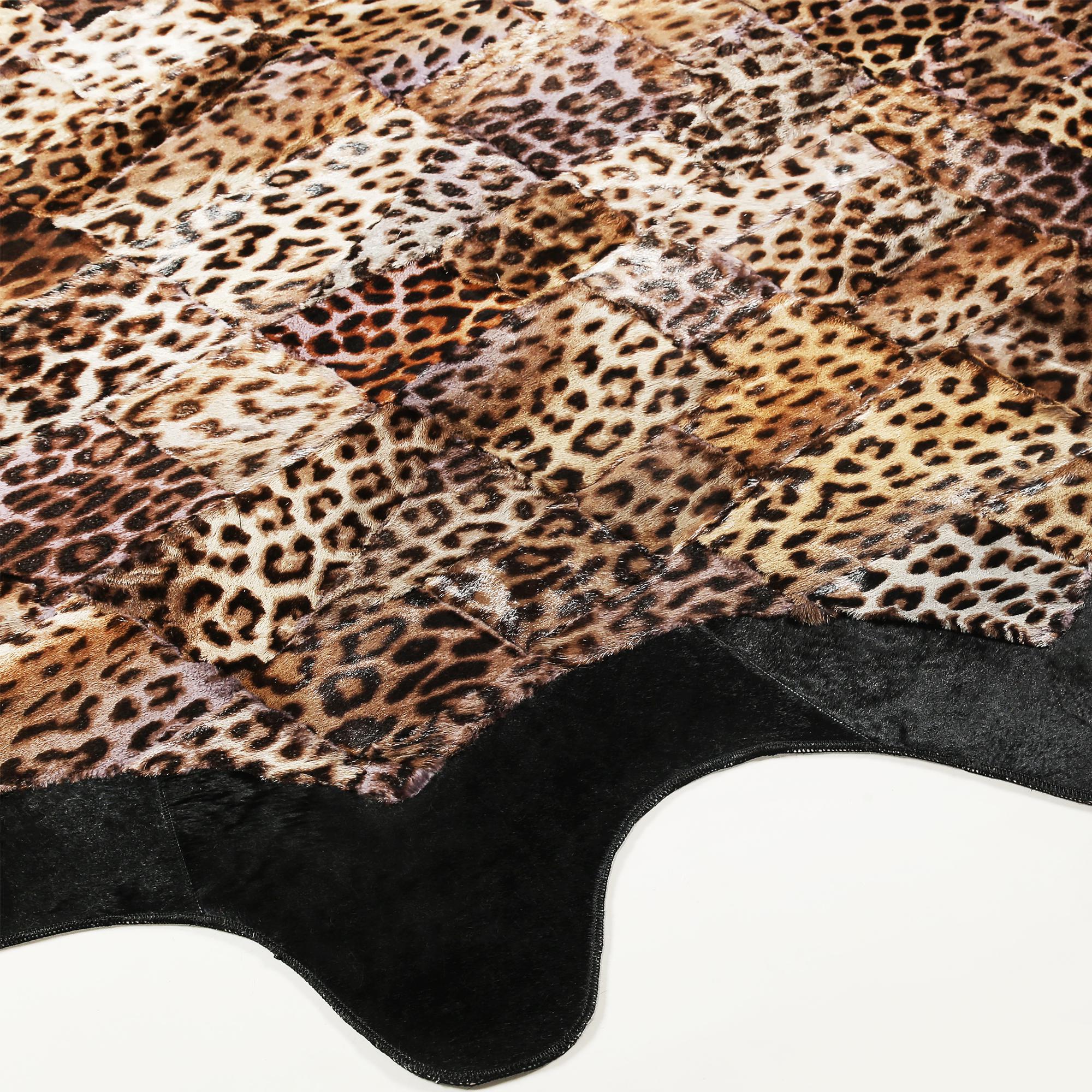 Leopard Print Patchwork Peltry Rug with Black Border 5ft x 6.5ft