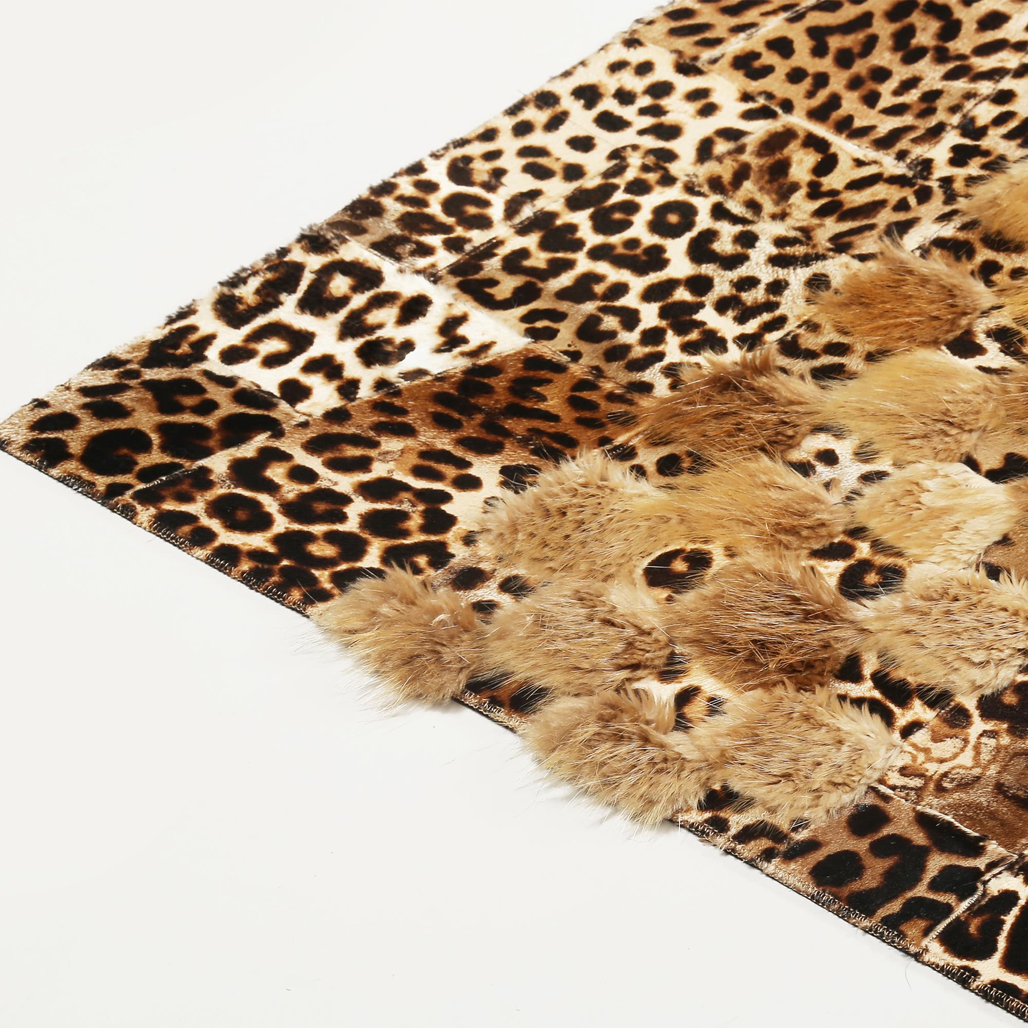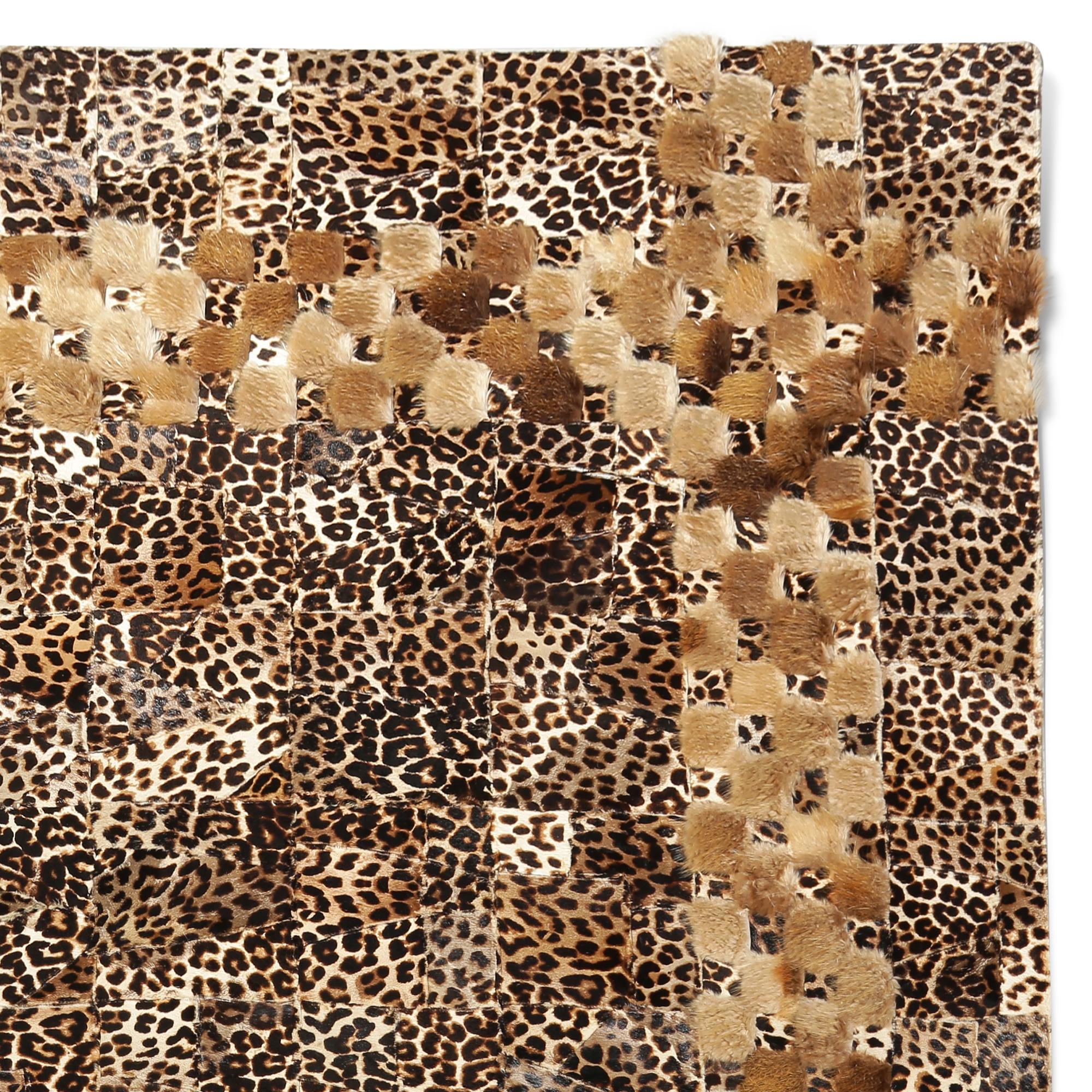 Leopard Print Cowhide Patchwork Rug – Handmade Genuine Leather Area Carpet, Custom Size