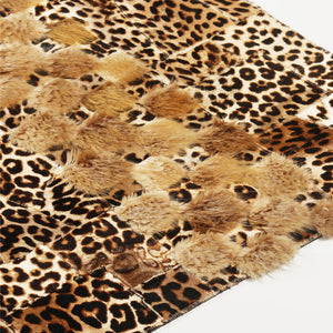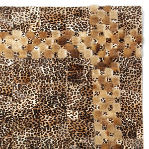 This leopard print cowhide patchwork rug is a handmade genuine leather carpet designed with bold animal-inspired patterns. Its unique patchwork design and warm tones bring character and style to living rooms, bedrooms, or entryways. With custom size options, it is both durable and luxurious for modern interiors.