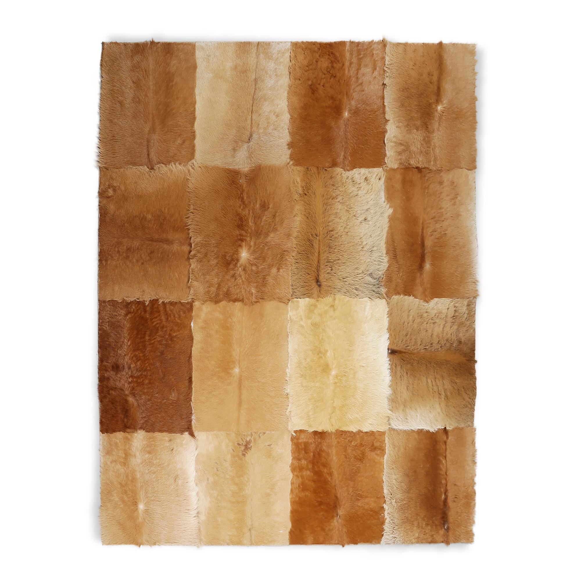 Add a touch of rustic sophistication to your space with the Light Brown Patchwork Calfskin Rug. Crafted from genuine cowhide, this checkered tan rug showcases the natural beauty and durability of cow skin leather. Its neutral tones and patchwork design make it a versatile addition to both modern and traditional interiors. Perfect for living rooms, bedrooms, or offices, this natural leather rug combines timeless style with functionality. Whether as a centerpiece or an accent, it’s an excellent choice for those who appreciate quality craftsmanship and rustic charm.