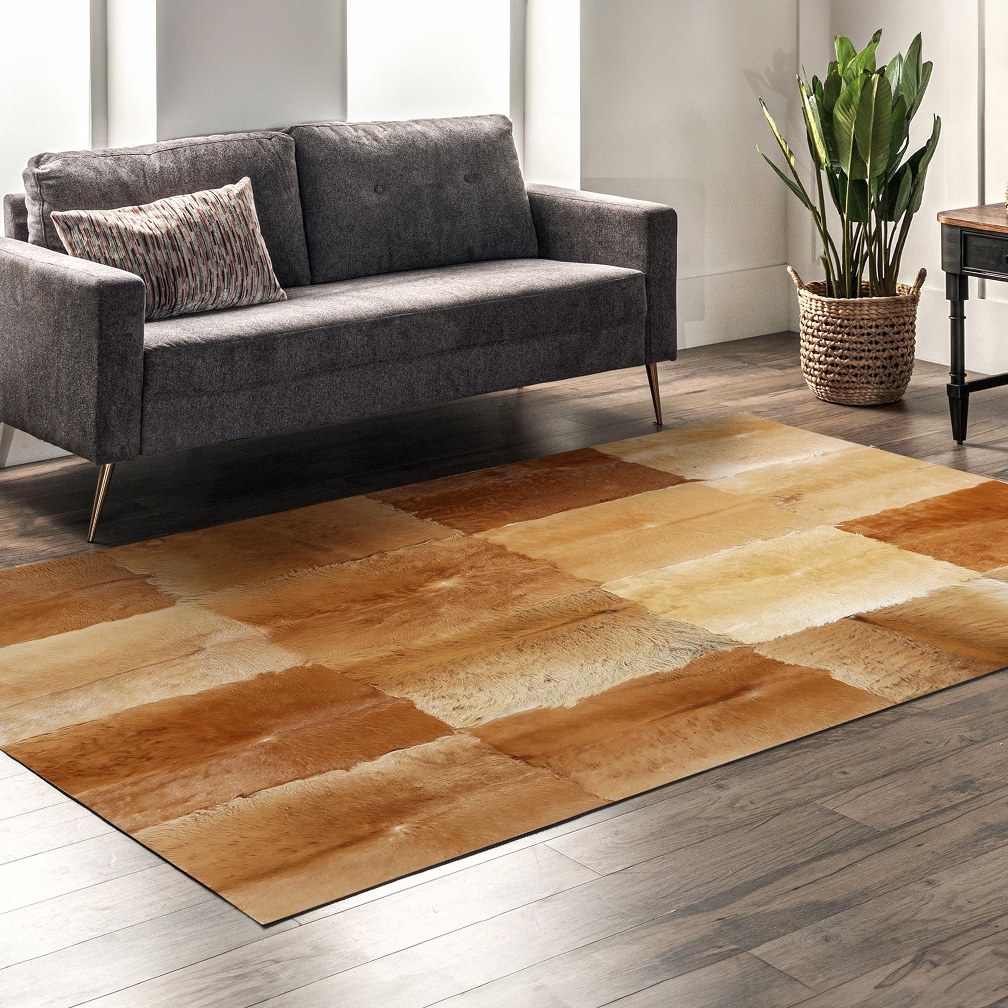 Light Brown Cowhide Patchwork Rug, Handmade Genuine Leather Area Carpet