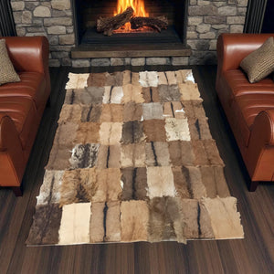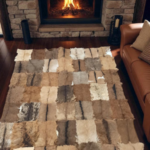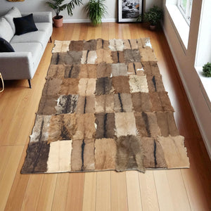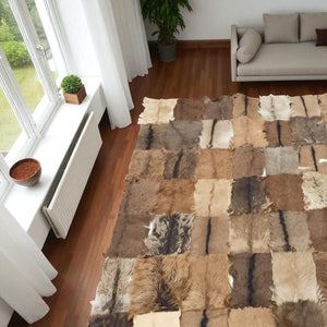 This goatskin area rug features a patchwork of natural goat fur pieces in warm brown and tan tones. Each panel is hand-stitched to highlight the rich textures and color variations of genuine goatskin. Ideal for creating a rustic or organic ambiance, this rug brings warmth, texture, and artisanal charm into any room. Its durable construction and eco-friendly materials make it a long-lasting and sustainable decor piece.