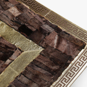 Add warmth and elegance to your space with the Shiny Brown Tuscan Rug with Gold Frame. Made from genuine sheepskin fur, this patchwork rug showcases a harmonious blend of natural light brown tones and a sophisticated gold border. The soft and shaggy texture offers a luxurious feel underfoot, making it perfect for living rooms, bedrooms, or offices. Handcrafted with precision, this natural Tuscan fur rug combines timeless design with exceptional quality. Whether enhancing your decor or gifting for a special occasion, this rug is a standout piece that embodies style and comfort.