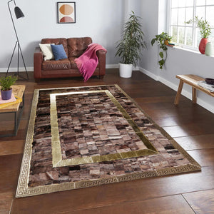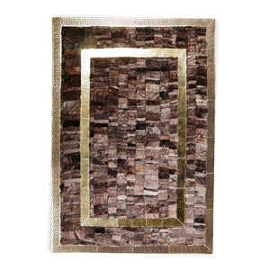 Brown Tuscan Leather Rug – Handmade Tuscan Carpet with Gold Border