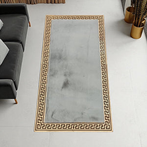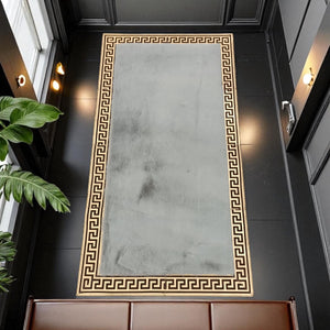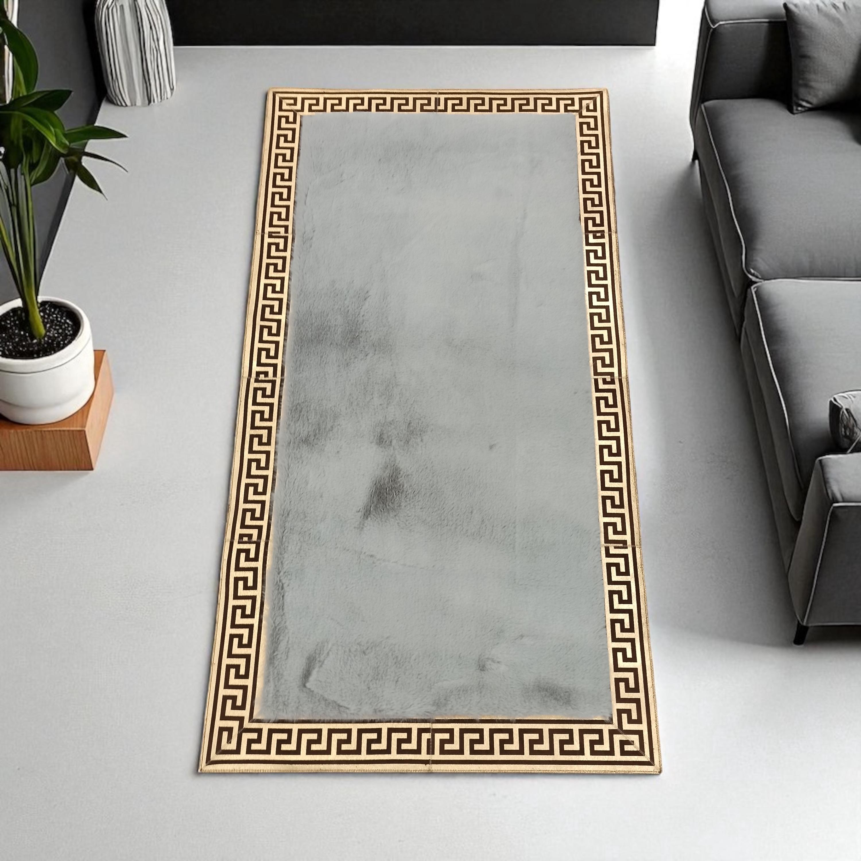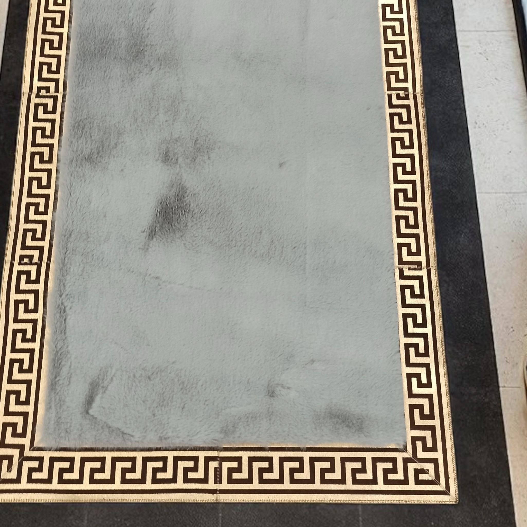 Add a modern and luxurious touch to your space with this light gray faux fur rug, perfectly complemented by a classic Greek key border. Crafted from ultra-soft materials, this rug offers unmatched comfort and elegance underfoot. Its sleek appearance enhances any hallway, entryway, or living room, making it a perfect fit for contemporary interiors. The non-slip backing ensures safe use in high-traffic areas, while its dense and smooth texture creates a cozy feel. Whether you're upgrading your decor or looking for a statement piece, this custom size rug delivers both style and function in perfect harmony.