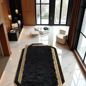 Luxury Black Toscana Sheepskin Rug with Gold Greek Border, Handmade Soft Fur Carpet, Custom Size Natural Fur Rug for Hall or Entryway