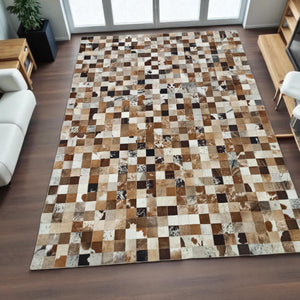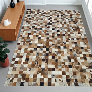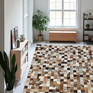 Mini Checkered Real Cowhide Area Rug, Cowhide Area Rug for Home Decor