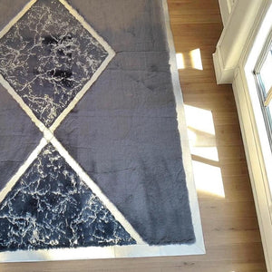 Modern Plush Rug with Black Marble Diamond Center, Custom Size Available