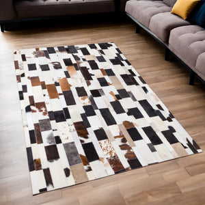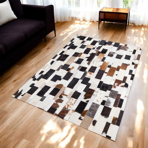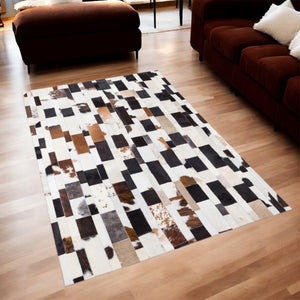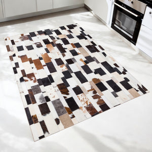 Transform your space with this Brick Pattern Patchwork Cowhide Carpet, a genuine cow leather rug featuring a unique multi-color calfskin design. The brown and beige tones blend seamlessly, making it an elegant choice for living rooms, offices, bedrooms, and modern farmhouse interiors.
